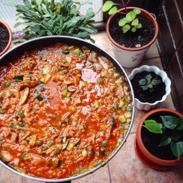 Esta es mi particular salsa boloñesa vegana. Esta receta surgió un día que estaba preparando proteína de soja texturizada con verduras salteadas, cuando decidí añadir tomate frito al salteado, y el resultado es buenísimo. Se puede añadir a la pasta, a la pizza … More Boloñesa vegana