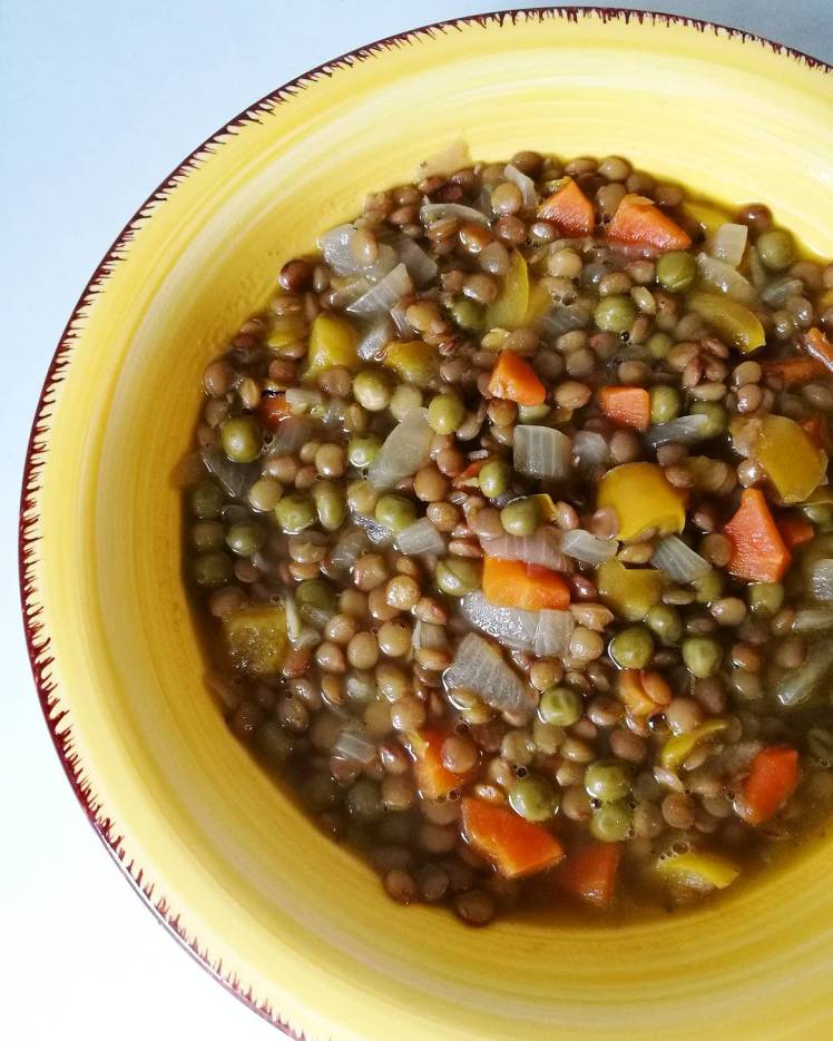 Hace unos días me entró un antojo enorme de lentejas y me sorprendí a mí misma cuando decidí que era hora de crear un buen cocido. Para ser una persona que no sale de los garbanzos, he de reconocer que hice un gran trabajo improvisando con otros tipos de legumbres (hablo en plural porque añadí guisantes). Así que aquí dejo una sencilla receta de lentejas, por si te pasa como a mí, que no sales de tu receta habitual, y te apetece probar una forma diferente de cocinarlas.